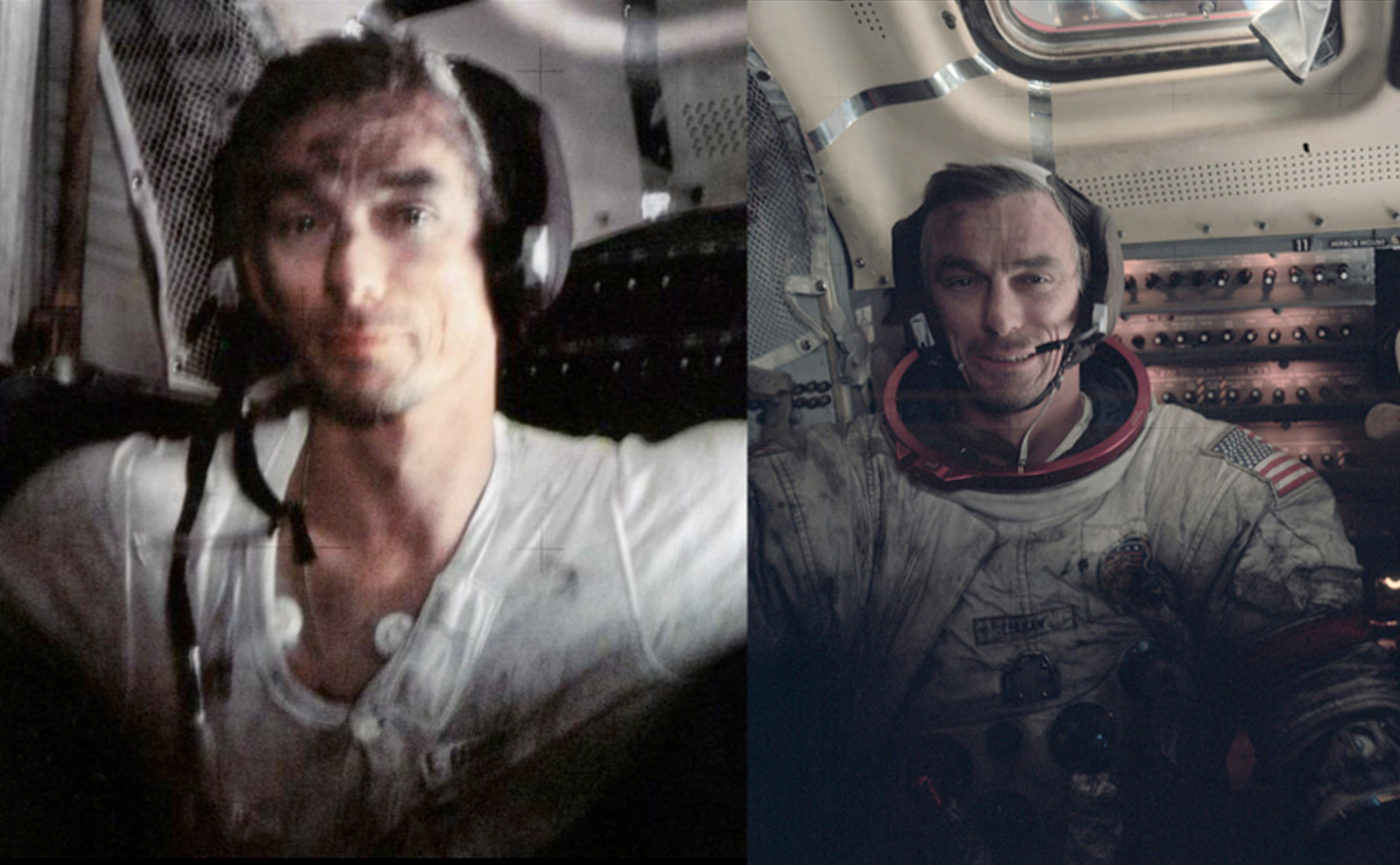 The Apollo astronaut Gene Cernan, liberally coated with moon dust after returning to the Lunar module