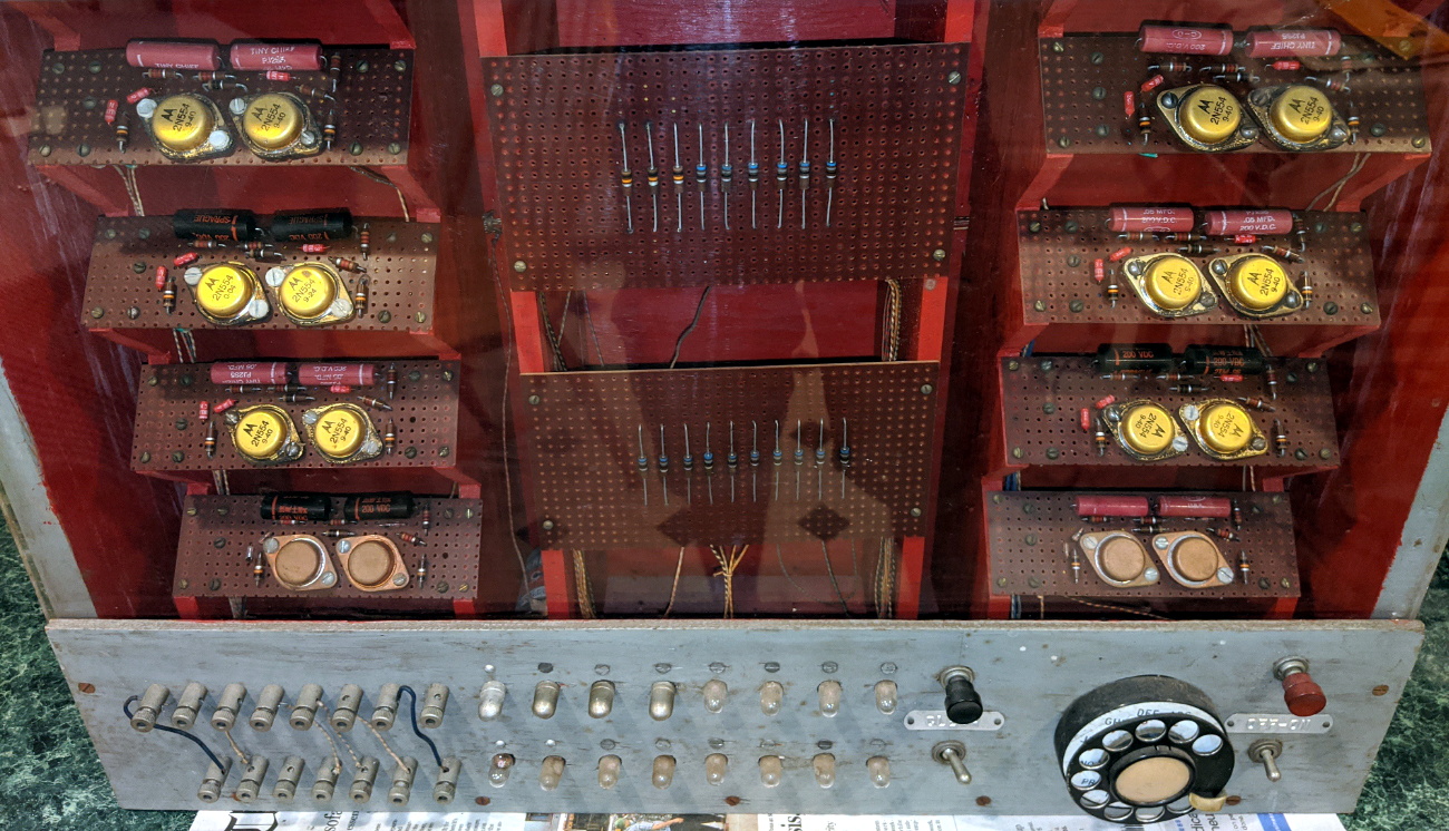 Which is exactly how [John] came into possession of the TRANSBINIAC. Included in a collection of gear that may have once belonged to a silent key, the device is a custom-built solid-state computer that appears to have been assembled in the early 1960s. Featuring a large see-through window not unlike what you might find on a modern gaming computer and a kickstand that tilts it back at a roughly 45° angle, it was obviously built to be shown off. Perhaps it was a teaching aid or even a science fair entry.